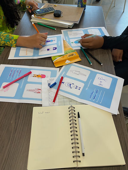 De mentees begonnen met het creëren van hun held of heldin waarbij sommigen al meteen wisten wat de superkrachten waren terwijl anderen eerst de afgeronde tekenwerken goed moesten bestuderen om vervolgens tot speciale vermogens te komen (zie figuur hieronder). Het inzetten van de krachten was voor sommige respondenten nog lastig, waardoor ik op sommige momenten moest bijschakelen, zodat ik samen met de mentee een idee of concept kon formuleren.